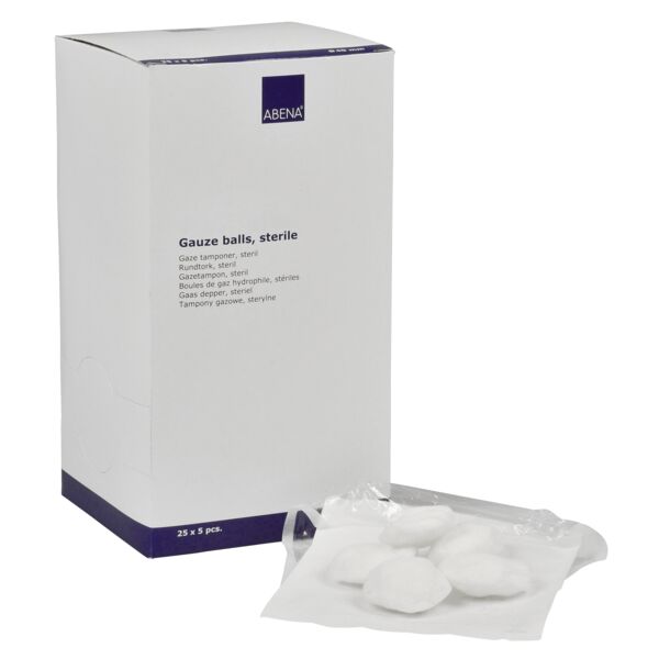 ABENA gauze balls are softballs used for wiping skin, absorbing fluid, and cleaning wounds where sterile or non-sterile compresses are required.
